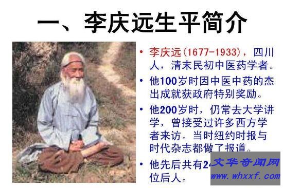 李庆远是清朝时代的人物,他先后经历了清朝九代王朝直至民国时期,按照这个年代来推算的话李庆远总共活了256岁,也因此被称为世界上最长寿的人,不过这只是人们推算出来的结果,所以还没有被吉尼斯纪录所证实,不过这证实了网上传出世界上活了1300岁的人是假的。