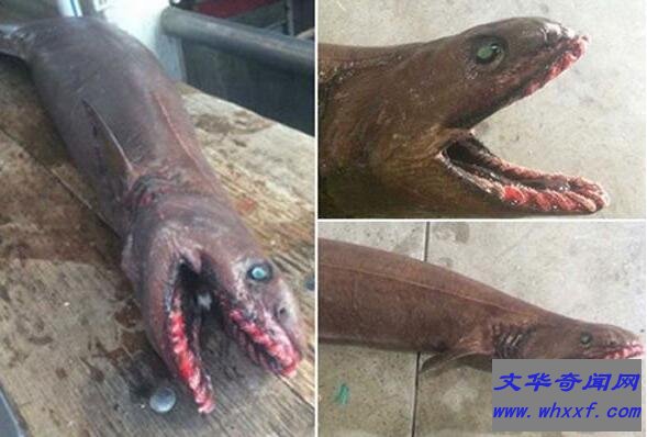 皱鳃鲨常见的鲨鱼外形完全不同,它们生活在500-1500米的深海,因为奇异的外形,这种古老的物种,头部呈蜥蜴状,也似蛇类,被许多古老神话称为海蛇一样的海怪。细长的躯体,蛇一样的脑袋,300颗牙齿对于其他鱼类和乌贼等是最大噩梦。