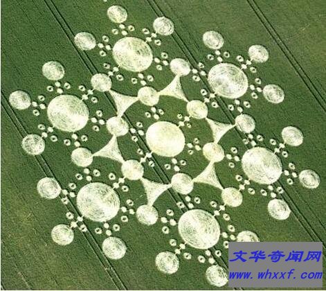 这个一夜之间出现在方圆8平方公里的麦地里,似乎是从天而降了410个有规则的圆圈,这些圈圈共同构成了一个直径约280米的精美图案。这一麦田圈的出现震惊了世界各地的人,英国麦田圈组织甚至悬赏10万英镑想要找到能够复制这一麦田圈图案的人,只是至今还未有一人能够拿到这一奖金!
