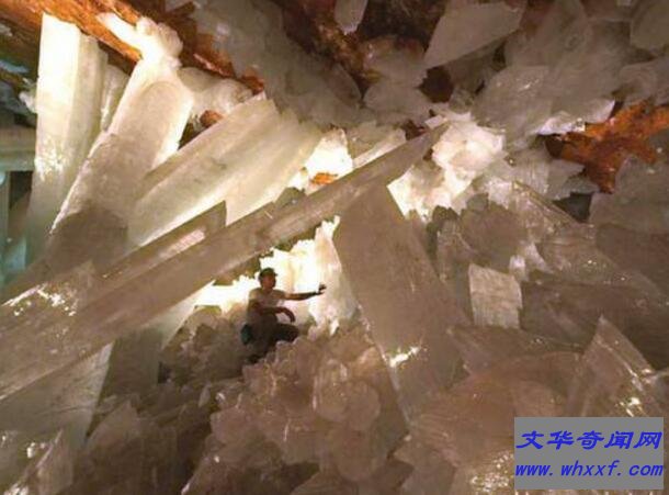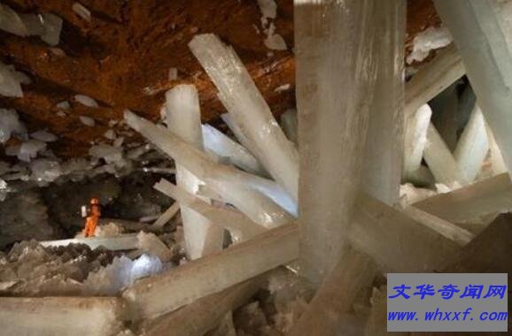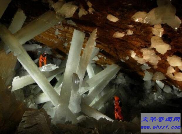去年秋天,探险家和摄影师乔治-库罗尼斯深入了奈卡水晶洞中,亲眼目睹这种难以置信的“巨人水晶洞”。虽然附近岩浆房中的岩浆不太可能喷出,但是水晶洞中的温度却是极高,超过了120华氏度(约合49摄氏度),湿度大约为95%。如果没有穿上特制的冷却服,人们一次只能在里面呆上几分钟。