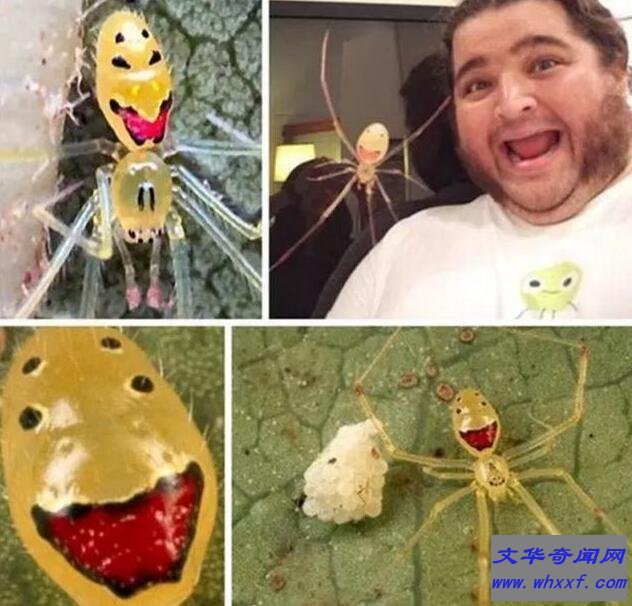 笑脸蜘蛛是一种仅生活在美国夏威夷群岛的独特蜘蛛,在它们的腹部有着酷似人脸的图案,看上去可爱又极其诡异,要比普通的人面蜘蛛更加的逼真。你甚至可以很明显的在笑脸蜘蛛的肚子上看到眉毛眼睛以及一张血红的嘴巴。