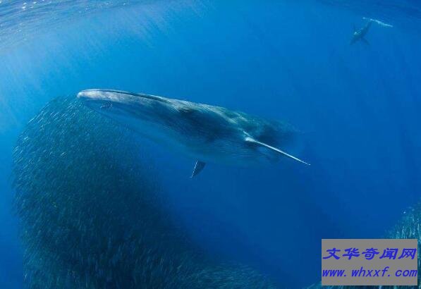 布氏鲸,背部深灰色,腹面黄白色,平均长度在12米左右,曾有摄影师捕捉到极为罕见的一幕,墨西哥拉巴斯海岸的科特兹海拍摄到一只成年的布氏鲸跃出水面,看上去就像是一条巨大的鳗鱼在空中飞行。