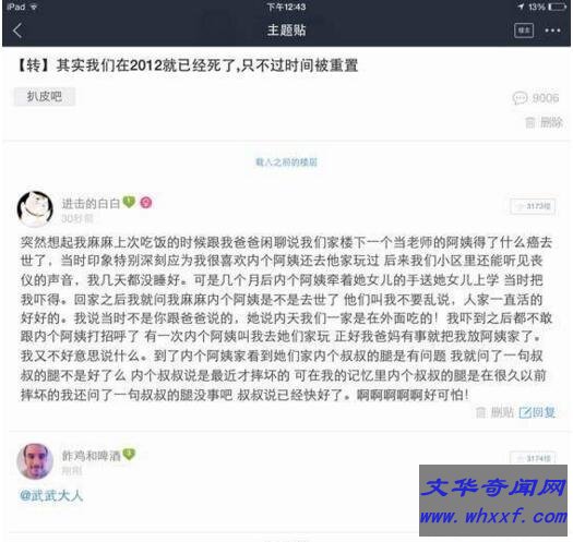 你知道为什么午马死了两次吗?其实我们现在所生活的世界是经过时间重置的。也因为时间重置所以引发了一些列的混乱,所以才有这午马死两次事件!难道你没有发现大家后就都没有2013年的概念吗?连一向严谨不太出错的春晚都遭遇了诡异的的2012年的春晚灵异事件?亦或者是国际上都十分有名的马德拉之死?