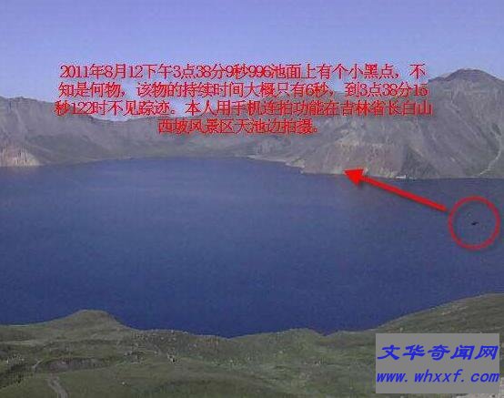 有关部门还在天池边建立了“天池怪兽观测站”,科研人员进行了长达数年的天池水面观察,并拍摄到珍贵的资料,证实确有不明生物在水中游弋!在一次的观测之中,水怪出现在朝鲜一侧的水面,离岸大约一百多米。它体型巨大,窜上来又下去,像海豹戏水,又像鱼在飞跃,黑乎乎的...经过专家分析,这极有可能就是一只真龙,是藏在天池水底的真龙...