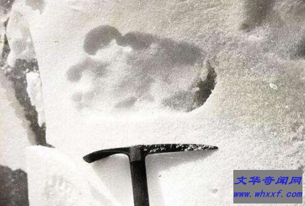 1951年,英国的一组登山队在喜马拉雅山脉西北区海拔5100米的雪地拍下了一串雪人脚印,这张照片十分大清晰,这只神秘的动物的脚印留给人们无限的幻想。