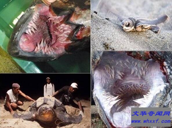 棱皮龟外表看上去憨态可掬,但是当它张开嘴时你还会联想到它可爱表情吗?棱皮龟的嘴里分布着数百个类似锯齿的钟乳状组织,科学家将其称为乳头状突起。棱皮龟主要以水母和其他软组织生物为食,其嘴巴内的钟乳状突起更能够牢牢的抓住水母等食物。由于水母本身几乎不含任何营养物质,所以棱皮龟存活一天几乎要消耗掉自身73%的体重,这也就是为何棱皮龟每天的大多数时间都在进食的原因。