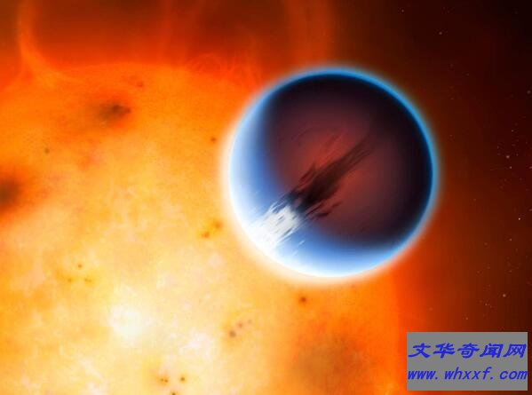 HD189733b距离地球大约60光年,哈勃望远镜观测发现这颗行星可能笼罩在恒星氢核聚变中,因为它们靠得太近了,表面已经被完全“烧焦”。