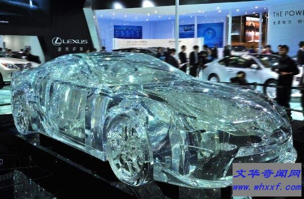 在2012年,广州车展上出现了一台不可思议的跑车,它是用水晶制造的跑车,是一款1:1等比例奢华水晶版的雷克萨斯LFA超级跑车,水晶跑车制作细腻,车体线条,内部引擎、座椅、方向盘及中控仪表板等都清晰可见。