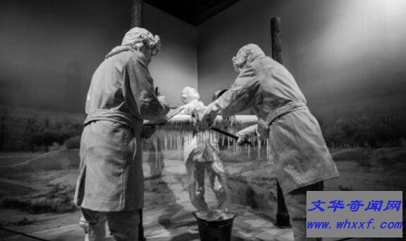 日军把被试验的人带到零下30摄氏度以下的室外,光着手脚,逼着他们把双手插进冷水桶里,然后把浸湿了的双手伸在外面。日本兵用木棍敲击被冻的部位,直至发出清脆的声音,之后将他们拉进解冻室,分别用冷水、温水、开水进行解冻。冻伤部位浇上开水后,骨肉马上分离。