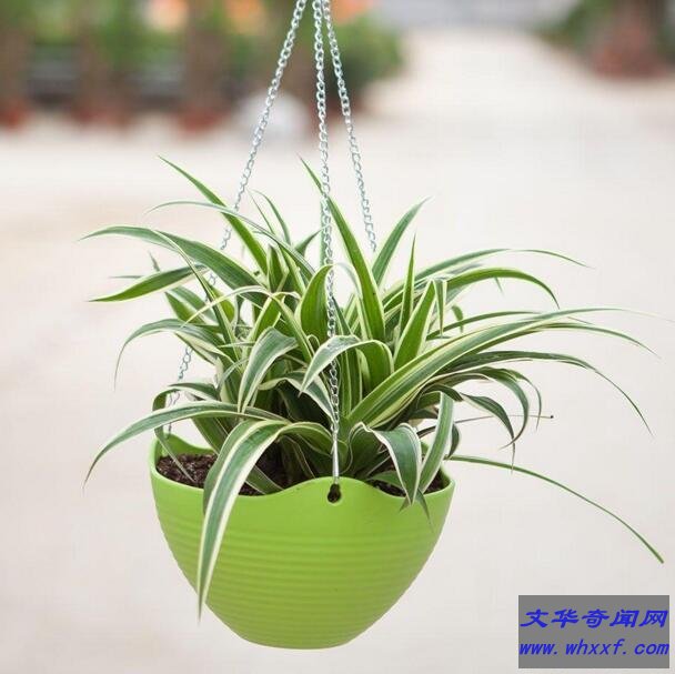 吊兰:吊兰是多年生草本植物,容易养殖,四季常绿,是最为传统的居室垂挂植物之一。吊兰能在微弱的光线下进行光合作用,可吸收室内80%以上的有害气体,吸收甲醛的能力超强,还能分解苯,吸收香烟烟雾中的尼古丁等比较稳定的有害物质,故吊兰又有“绿色净化器”之美称。