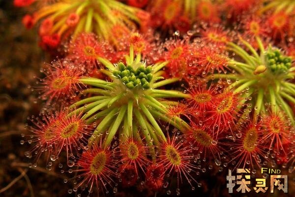 茅膏菜是这种植物中的一个大类,它们形态各异,分布于世界各地,它们的叶片密布着晶莹剔透的“露珠”,光彩夺目,深受人们喜爱。然而,对它的猎物而言,这些耀眼的光芒却是致命的,因为茅膏菜正是通过这些露珠来进行捕猎的。