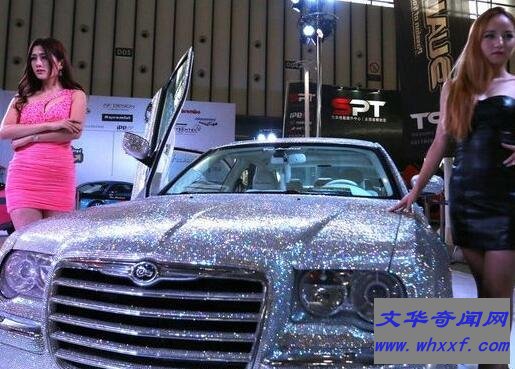 还有一个就是在国内,是一位极端的富二代的车,这辆钻石跑车,来自美国第三大汽车公司的克莱斯勒300C,了一款粉色的兰博基尼大牛,被一车的粉钻给布满了,加上非常犀利的剪刀门,紫色的前LED光源,给予了该车非同一般的既视感在去年的成都车展上,据了解克莱斯勒300C全车布满了细致的多达12万颗粒的钻石。