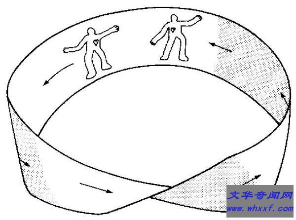 一根简单的纸条,只是旋转了两次并且首尾相连,就变成了一个永无止境的环,且永远只有一个面,无法被分开,也不能独立存在。