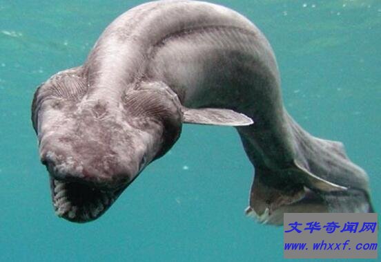 皱鳃鲨是一种最原始的鲨鱼,具有活化石之称。其体长为1.5米,身体两侧各有六条鳃裂,鳃间隔延长而褶皱,相互之间是覆盖的。嘴巴在最前端,吻非常短。这种鲨鱼在捕食上最十分凶猛的,但是不会攻击到人类。