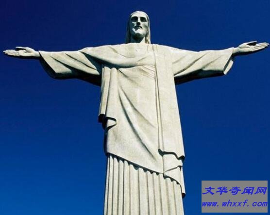 基督教是世界三大教之一,其主耶稣享誉全世界。它坐落在巴西基督山上,高为38米,重达1145吨,从左手到右手距离为23米。耶稣身着长袍,双臂平举,深情的俯瞰一切。世界上许多游客都纷纷前来观赏,是巴西人民热情接纳和宽阔胸怀的象征。