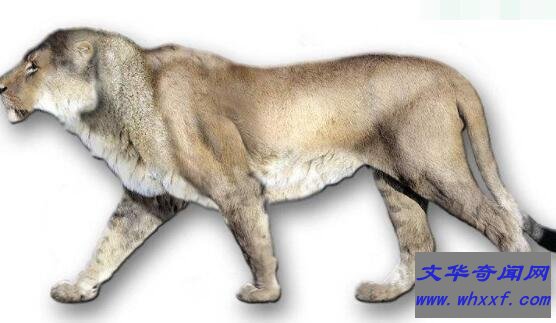 残暴狮是世界历史上最大的猫科动物,主要生活在冰河时代北美大陆中。据称体长可达到惊人4.5米,看着如同一辆小汽车;体重达到800多斤。可以想象一下,若是这头狮子出现在你的眼前,是不是会被吓得心惊肉跳的。