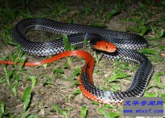 从外表看这是一种漂亮蛇,通体颜色为蓝色,头部和尾部为红色,名为爪哇丽纹蛇。不过不要被它外表所迷惑,属于一种毒性比较强的蛇。目前人类对它所掌握资料不是那么健全,毒素有多强烈不得而知。不过爪哇丽纹蛇性情比较温柔,所以大家可以放宽心。