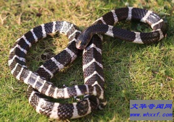 银环蛇被称为陆地第四大毒蛇,毒腺较小毒性猛烈,能够释放出两种神经毒素,能轻易麻痹敌人;若是中毒量比较多,致死率非常高,例如只需要0.08毫克,就足以毒死一个人。银环蛇体长1-1.8米,背面黑色和蓝黑色,腹面污白色,性情较温和,很少主动攻击人。