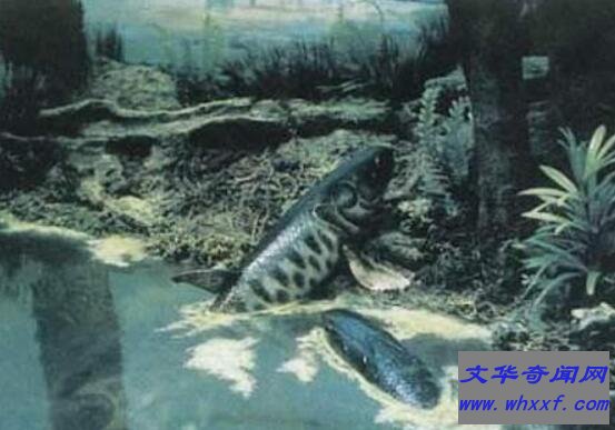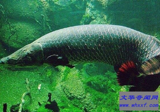 巨骨舌鱼是是世界现存古生淡水鱼类,已经存活一亿年。生活在南美洲最原始热带丛林中,常见于亚马逊河流域中。体长为2-6米,体重200斤,表皮颜色灰绿色,食物以小鱼、蛇、龟、青蛙和昆虫等。2015年四名泰国男子捕捉到一条460斤巨骨舌鱼。