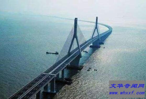 这座大桥位于浙江舟山、宁波,从1999年动工到2009年完工运营花了整整10年时间,横跨4座岛屿,翻9个涵洞,穿2个隧道,全长为48.16公里,耗资130亿人民币,是世界规模最大的岛陆联络工程。