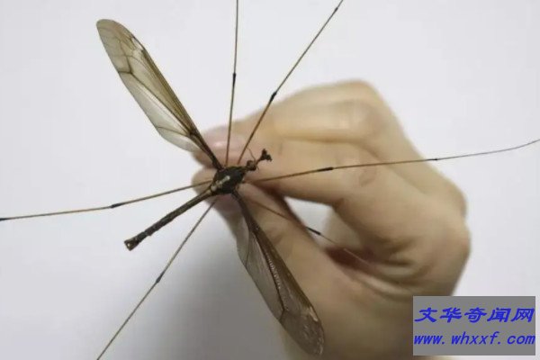 巨大蚊又称为帝王大蚊、米卡多大蚊,属于双翅目大蚊科巨大蚊属生物,分布很广泛,它的脚非常长,从前脚尖到后脚尖的长度可以达到21公分,明显比人类的手掌还要大,但巨大蚊只是外形上看起来很凶猛,它们不会主动攻击人类或其它动物,因为它们常以植物为食,是素食主义者。