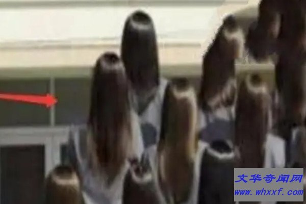 在这张集体照中,可以看见第二排最左边的女生看上去非常有违和感,感觉整个头都不是她的一样,而且第三排最左边那个女生左下角的头发,感觉像是被什么东西撑起来一样。