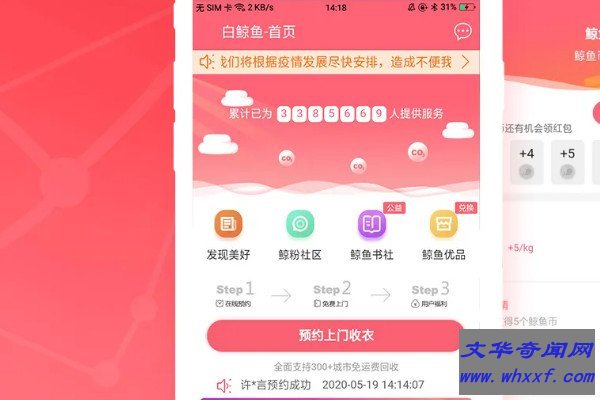 白鲸鱼是一个倡导闲置零抛弃、旧衣循坏利用的环保公益平台,支持免费上门回收,用户可以通过微信、手机官方客户端等方式下单。官方承诺衣服在回收后会经过严格挑选,符合捐赠的衣服会捐献给贫困地区,不符和的衣物会再加工和出口处理。