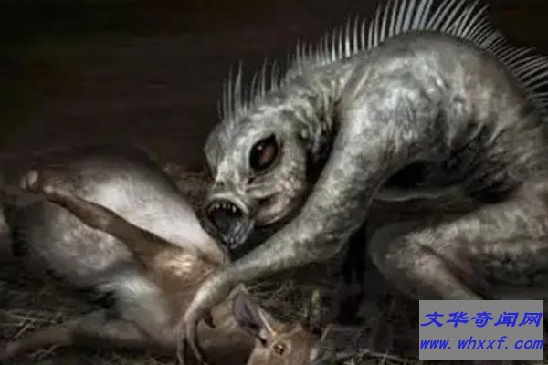据记载,曾经有一位目击者称自己看见一个古怪的吸血动物,这种动物身高大约在半米左右,皮肤跟鳞甲类动物一样,有着一双超乎寻常的大眼睛,外形有点像野狗,但却有着一对像野猪般的獠牙。