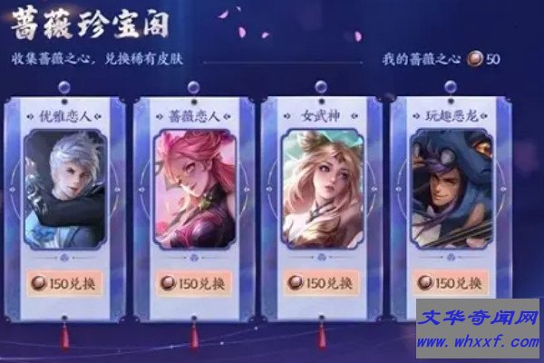 蔷薇之心是用来换取蔷薇珍宝阁限定皮肤的道具,每当活动开启时,蔷薇珍宝阁会开放5款皮肤的兑换,分别是孙尚香-蔷薇恋人、嬴政-优雅恋人、艾琳-女武神、高渐离-玩趣恶龙以及干将莫邪-胡桃夹子,兑换一款皮肤需要消耗150个蔷薇恋人,成功兑换后会通过游戏内的邮件发放皮肤。