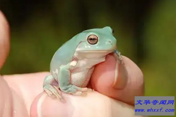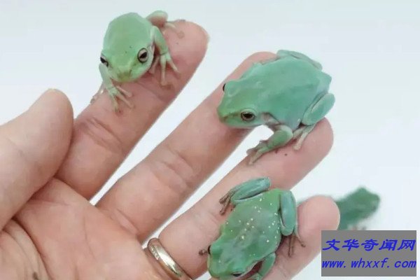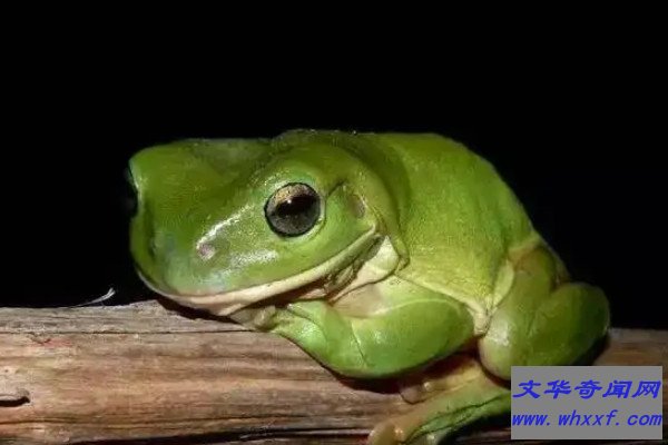 老爷树蛙的学名叫绿雨滨蛙,是雨滨蛙属中体型较大的树蛙,也是最肥大的树蛙种类,而大多树蛙都含有毒素,老爷树蛙也不例外,不过它们的毒素比较微弱,不会对人体造成危害,反而能分泌出可以破坏艾滋病原体的缩氨酸成分,具有一定的科学价值。