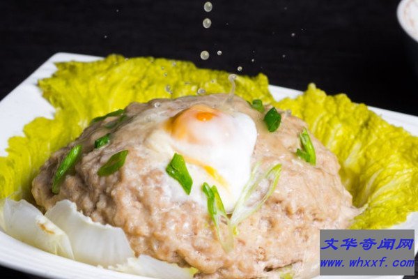 咸蛋蒸肉饼是广东传统的特色名点,它将咸鸭蛋和猪肉糜拌在一起,然后蒸成肉饼,散发出特别的咸香味,其中具有各种矿物质以及微量元素,对骨骼发育很有帮助,还能预防贫血。