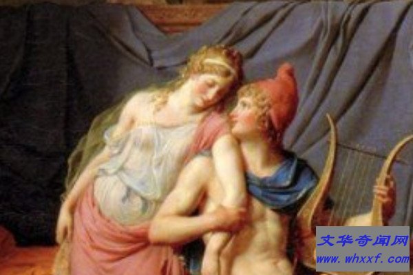 《帕里斯和海伦之爱》绘画的是帕里斯和海伦之间的缠绵,其实关于这幅画有一个故事,在西方神话中,帕里斯是特洛伊的王子,海伦为斯巴达国王的王后,而见到海伦的第一眼帕里斯就被她迷住了,然后帕里斯带走了海伦,这导致了一场战争的出现,就是特洛伊之战。