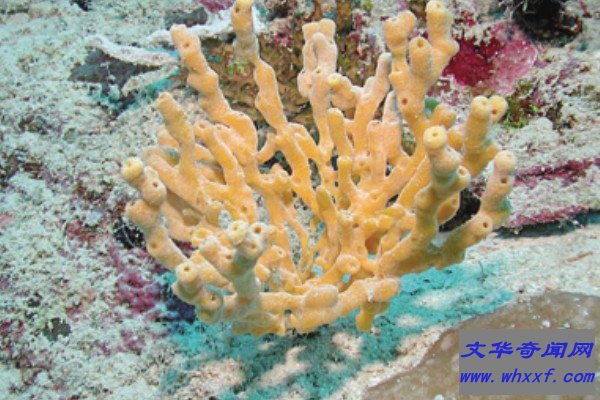 海绵动物的体型非常微小,在海洋中它们部分色泽单一,有些则十分绚丽,其颜色源于内胡萝卜素,主要由黄色到红色,由于它们没有心脏,在动物界中是最原始、最低等的多细胞动物。