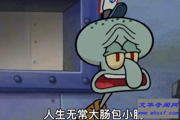 注意这里的大肠包小肠不是小吃,这句话出自于电影版《海绵宝宝》中章鱼哥的台词翻译,用来感慨自己的生活,表达一种遗憾的含义,之所以会成为流行语是因为这句话足够沙雕。